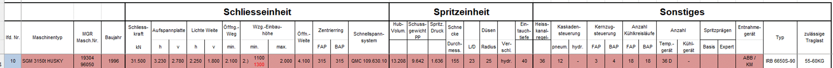 Technical Data Husky with 3150 tons